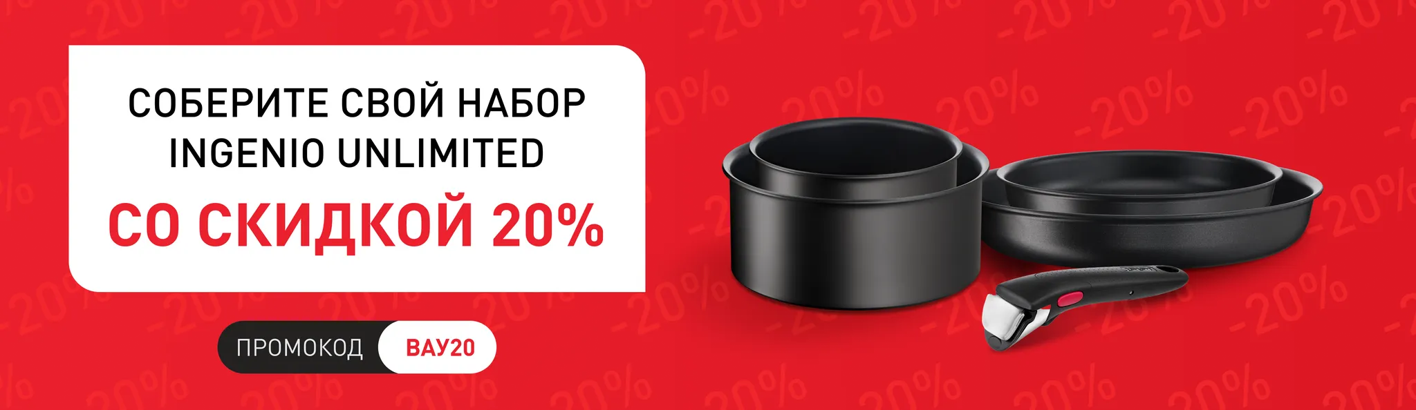 Промокод ВАУ20 дарит скидку 20% при покупке двух товаров и более, размещенных на акционной странице.