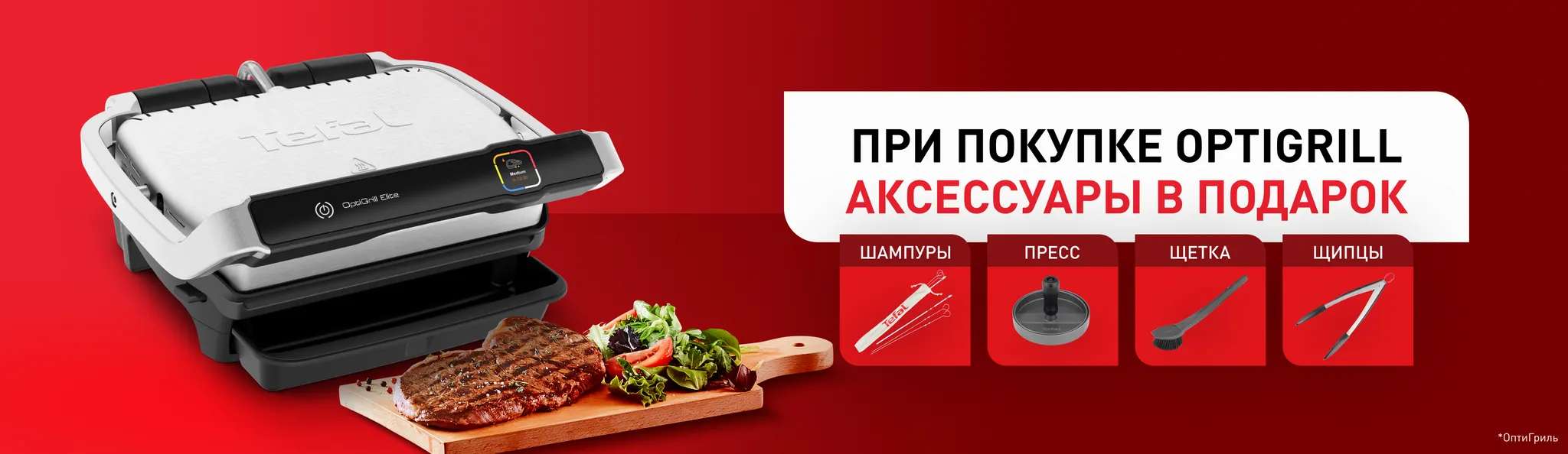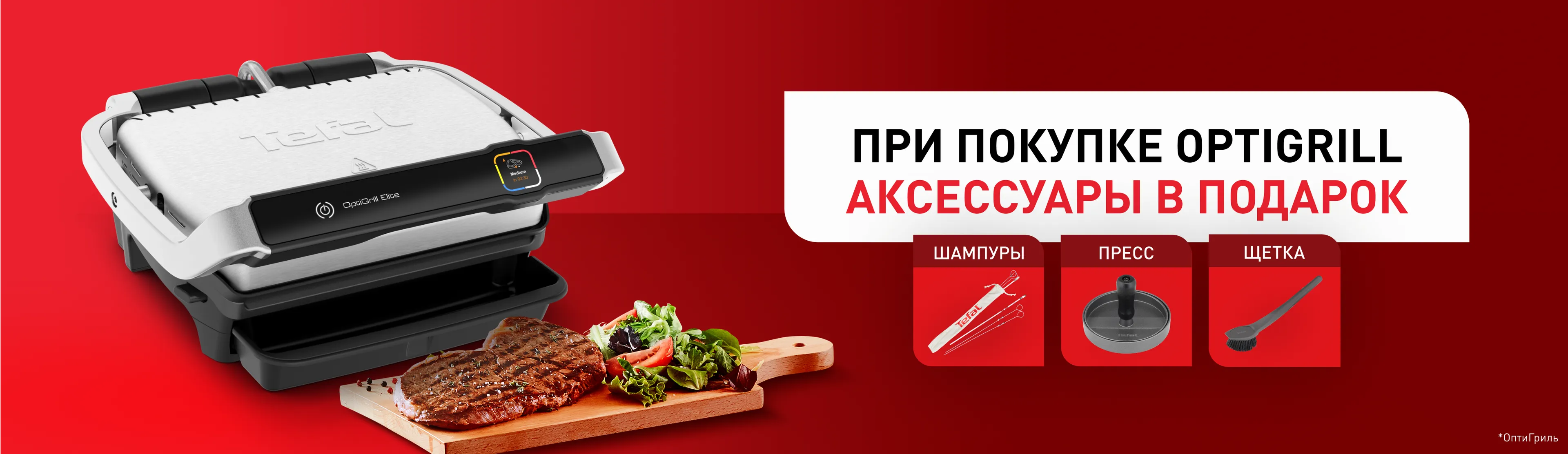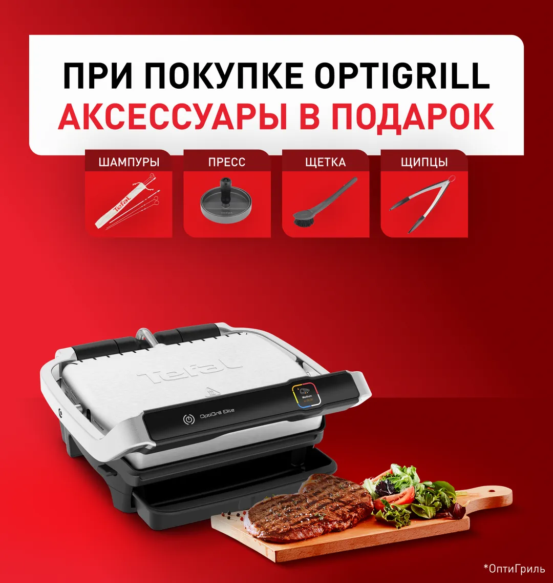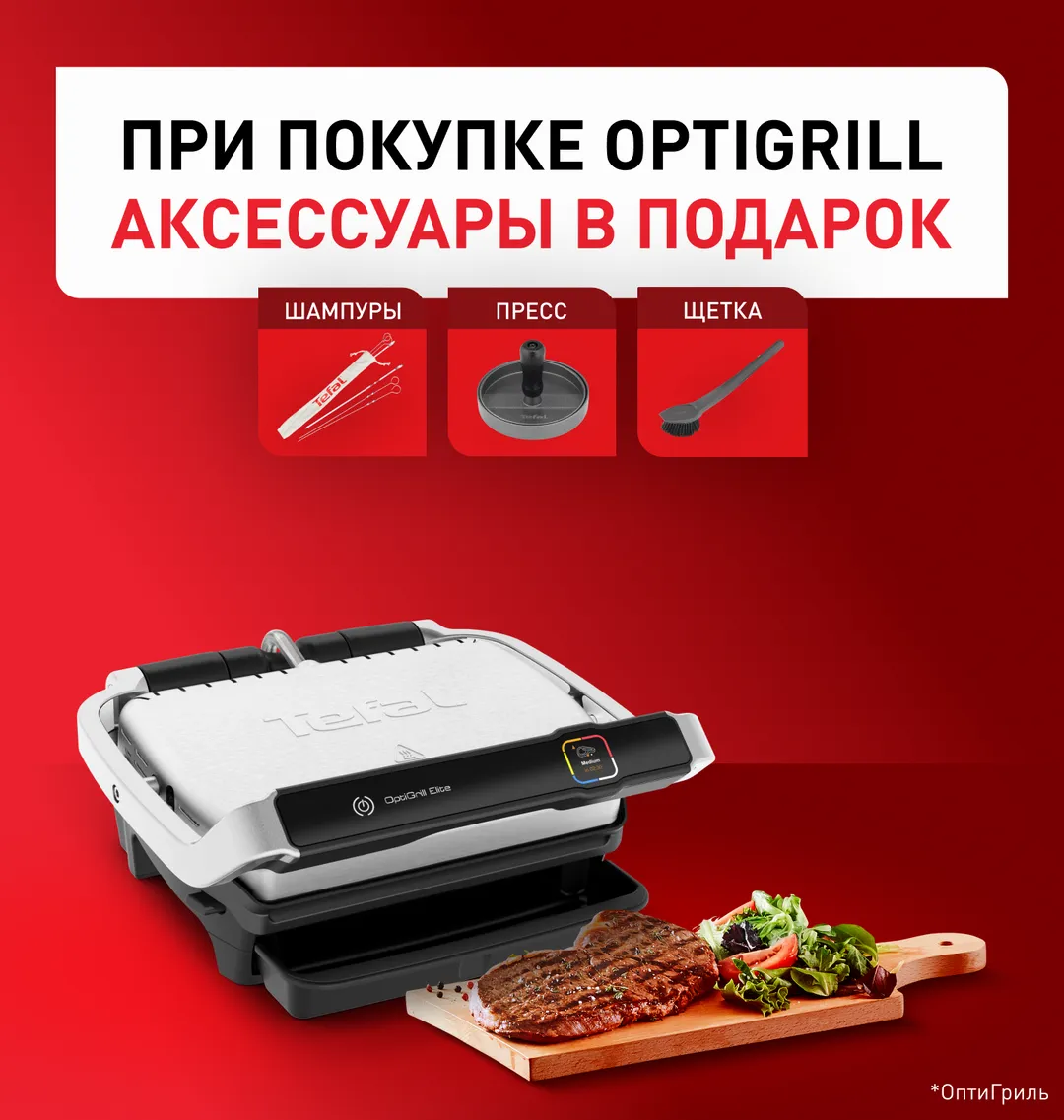 При покупке Умного электрогриля Tefal Optigrill аксессуары в подарок!