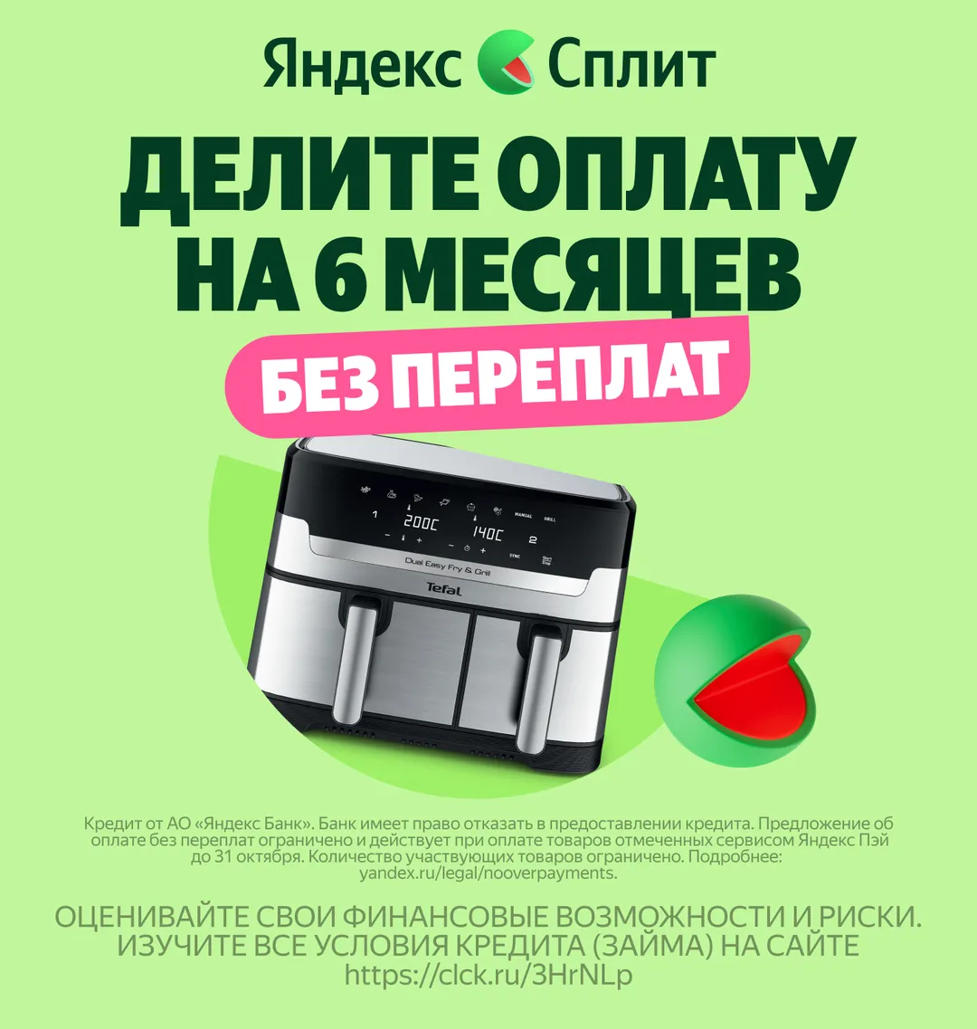 До 31 октября можете воспользоваться Сплитом 0-0-6. Разделите оплату покупки на 6 месяцев без первого взноса и переплат.