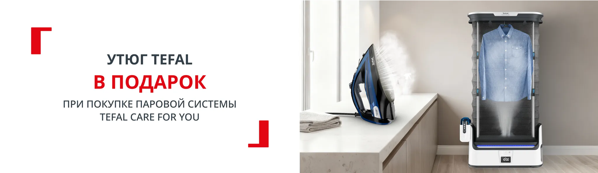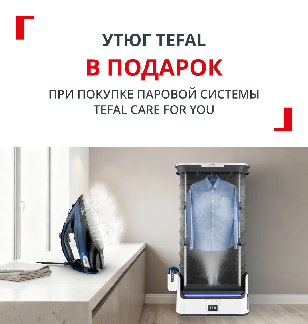 При покупке паровой системы для ухода за одеждой Tefal Care For You утюг Tefal в подарок!*